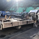 レンタルトラックで貸出する予定のクレーン、荷台のリアアオリと鳥居が大きく曲がっており、叩いて加工しても修正が難しいと判断して、リアアオリと鳥居を交換です。