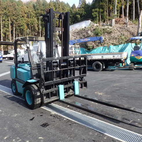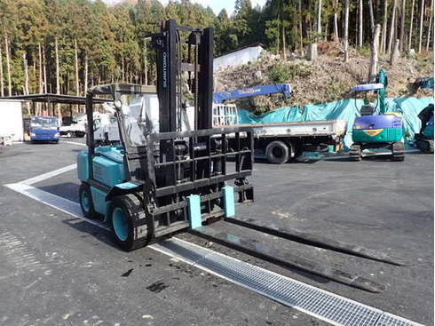 ※フォークリフト用強化板厚9mmのサヤフォークを取り付けています。